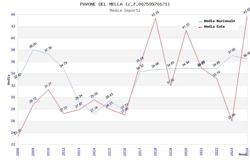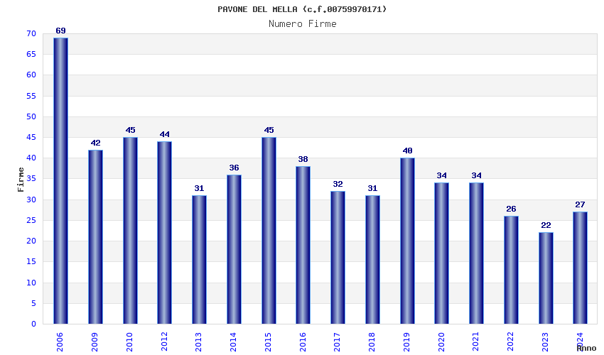 | Anno | Firme | Importi | Media | Naz. | Reg. | Prov. | Comu. |