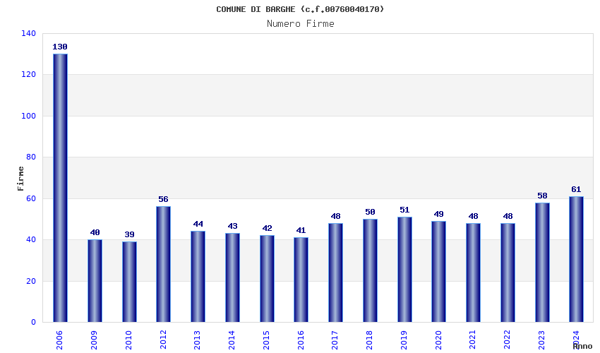 Anno Firme Importi Media Naz. Reg. Prov. Comu.