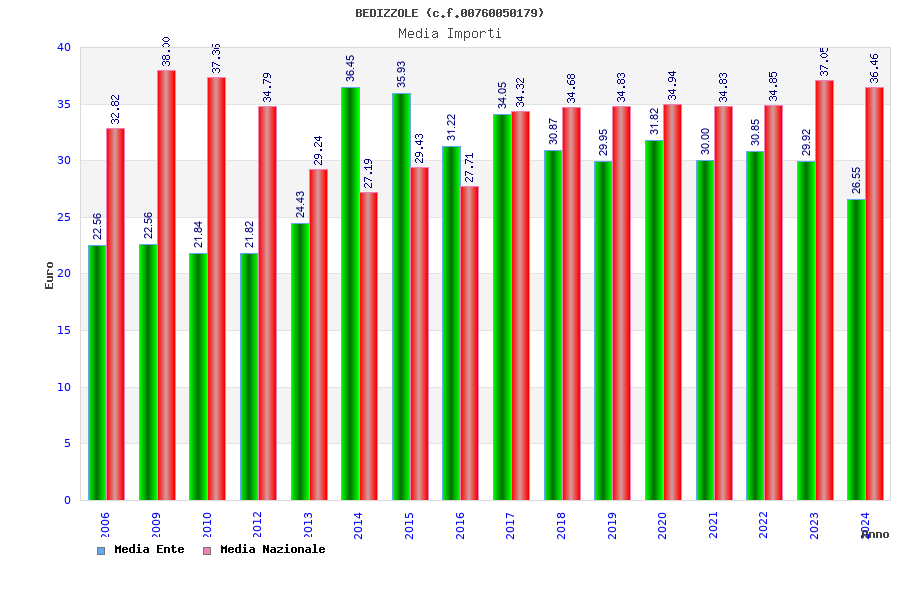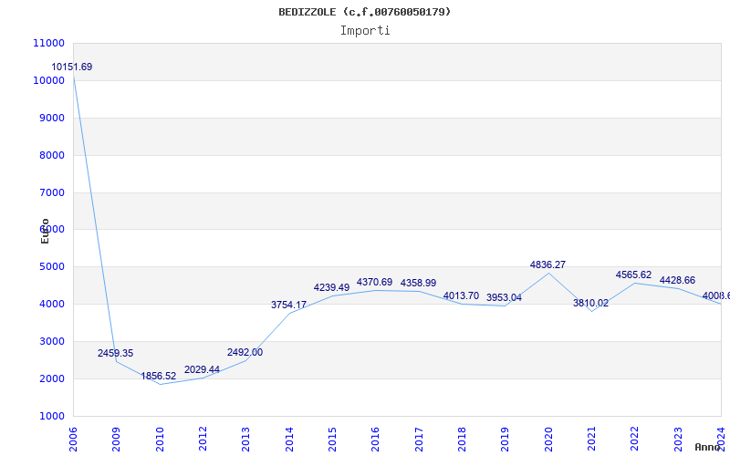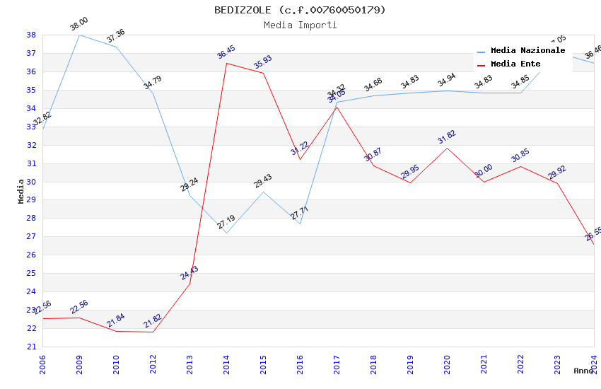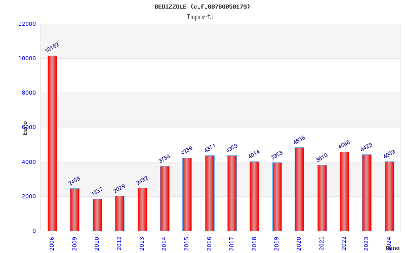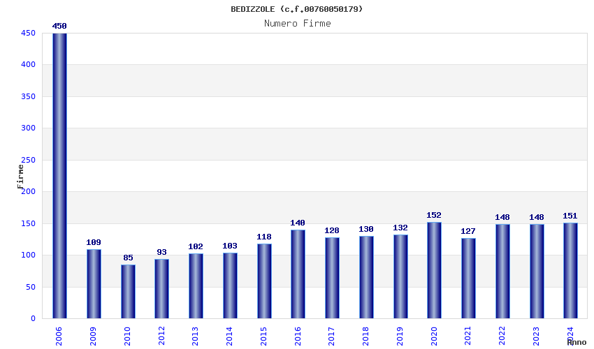 | Anno | Firme | Importi | Media | Naz. | Reg. | Prov. | Comu. |