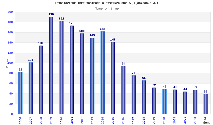 | Anno | Firme | Importi | Media | Naz. | Reg. | Prov. | Comu. |
