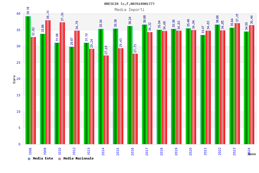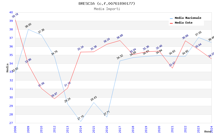 | Anno | Firme | Importi | Media | Naz. | Reg. | Prov. | Comu. |