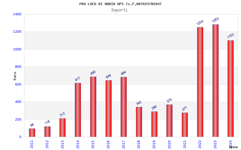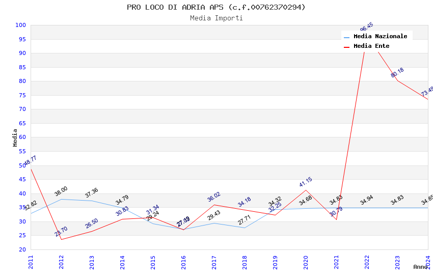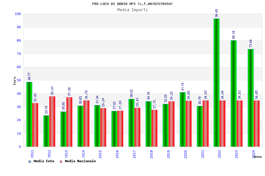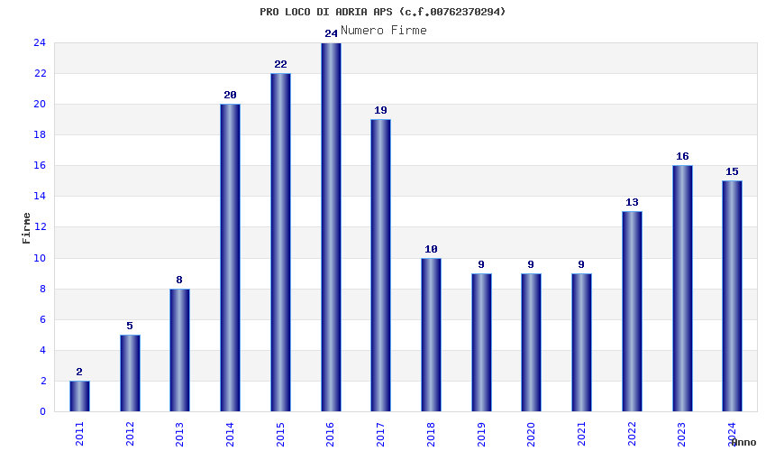 | Anno | Firme | Importi | Media | Naz. | Reg. | Prov. | Comu. |