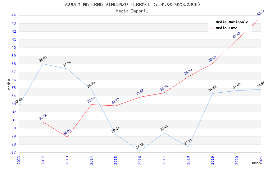 | Anno | Firme | Importi | Media | Naz. | Reg. | Prov. | Comu. |