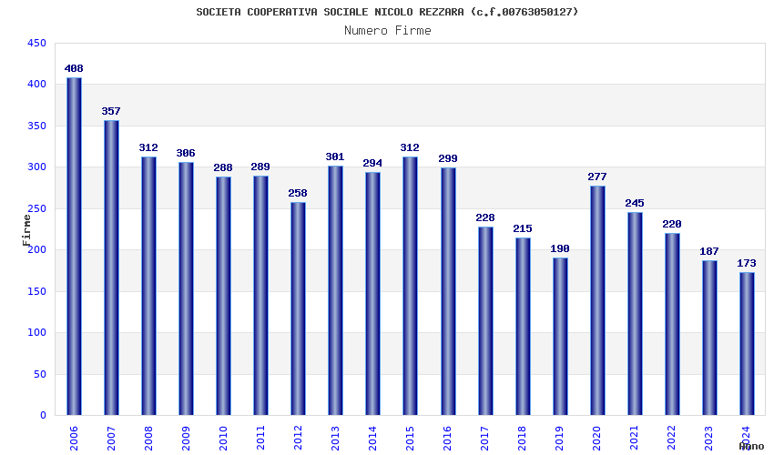 | Anno | Firme | Importi | Media | Naz. | Reg. | Prov. | Comu. |