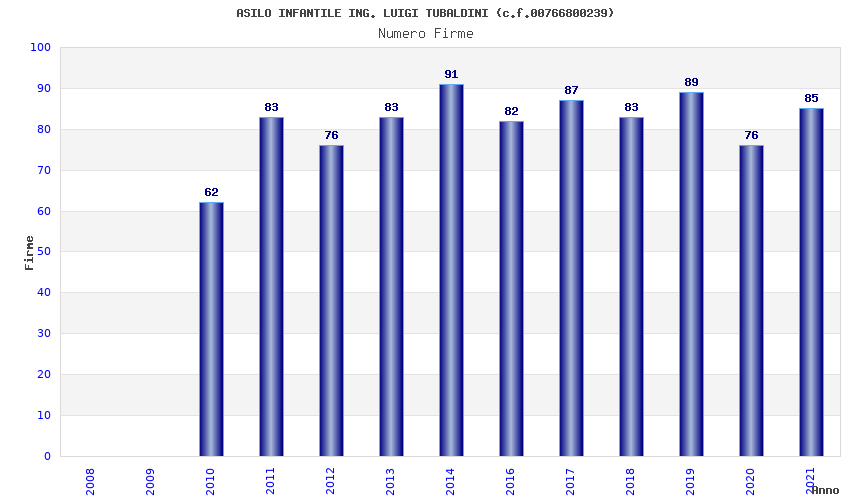 | Anno | Firme | Importi | Media | Naz. | Reg. | Prov. | Comu. |