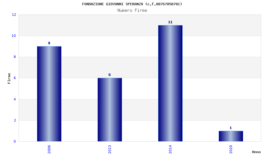 | Anno | Firme | Importi | Media | Naz. | Reg. | Prov. | Comu. |
