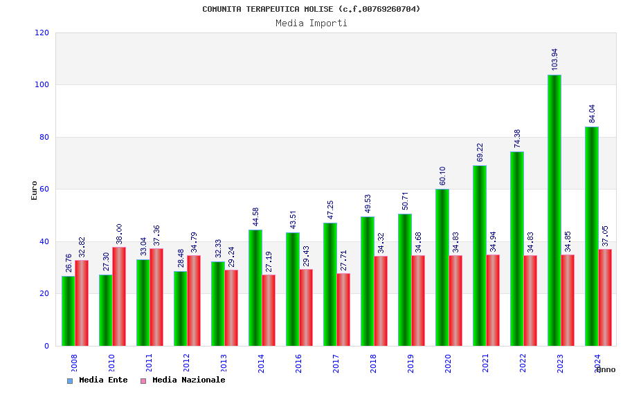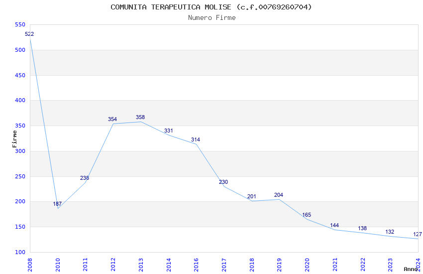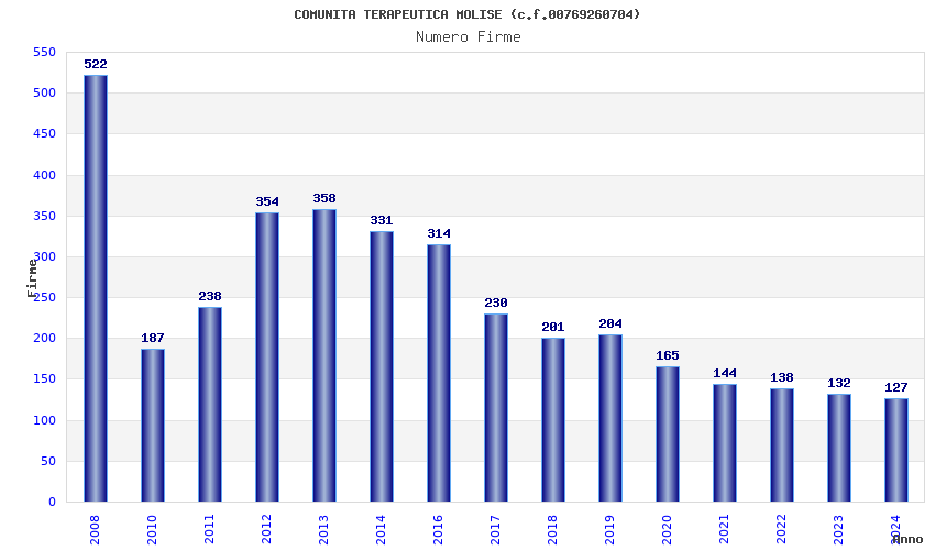 | Anno | Firme | Importi | Media | Naz. | Reg. | Prov. | Comu. |