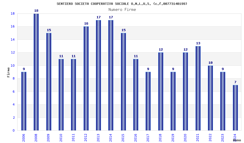 | Anno | Firme | Importi | Media | Naz. | Reg. | Prov. | Comu. |