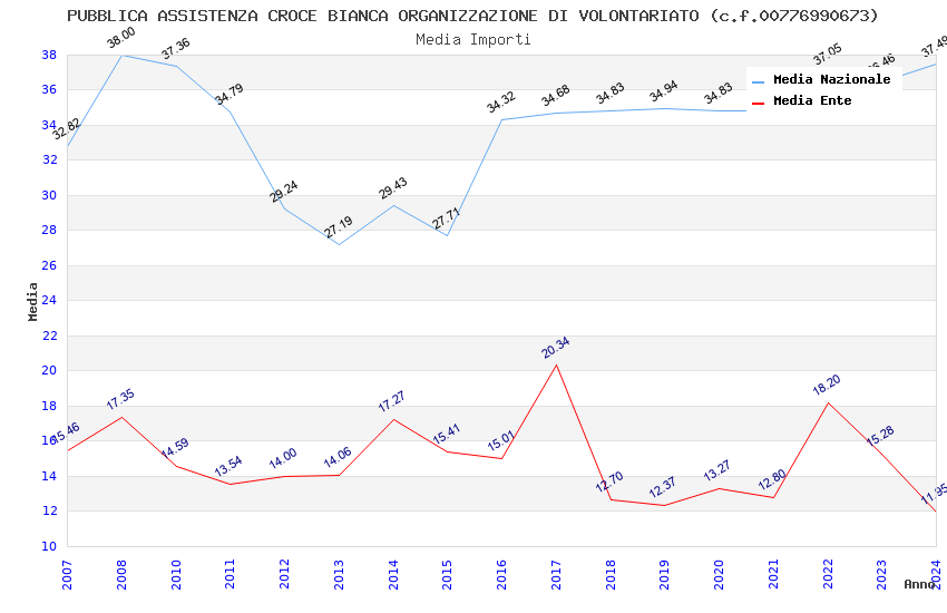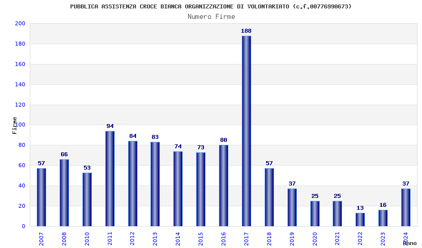 | Anno | Firme | Importi | Media | Naz. | Reg. | Prov. | Comu. |