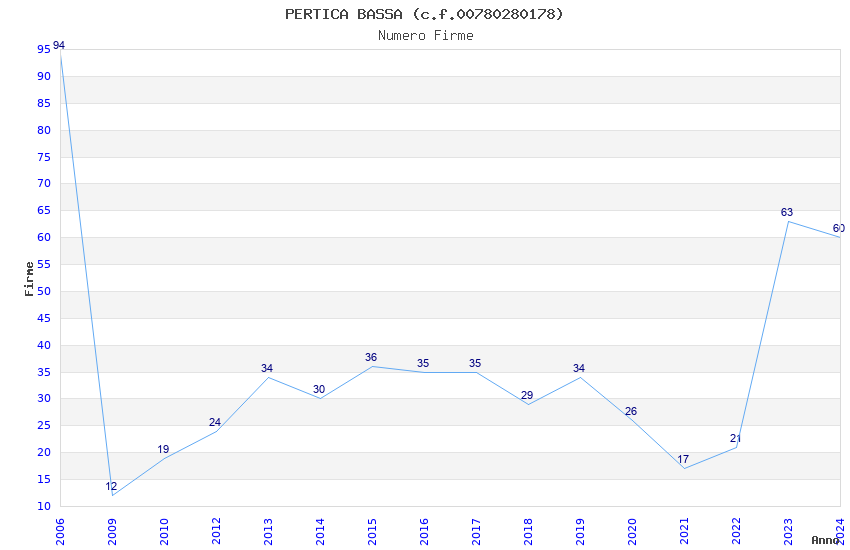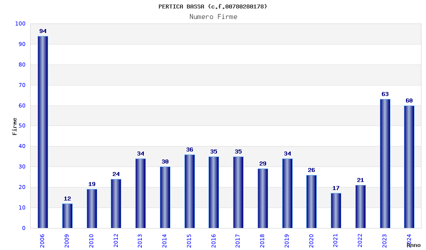 | Anno | Firme | Importi | Media | Naz. | Reg. | Prov. | Comu. |