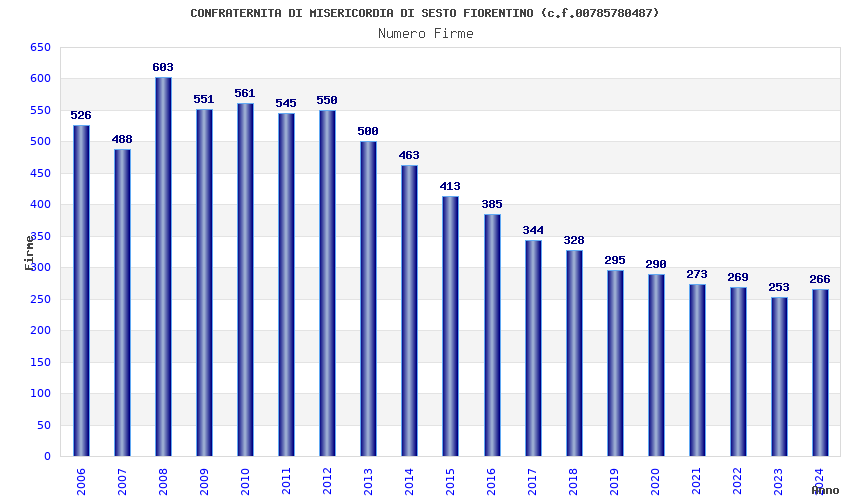 | 2024 | 266 | 9.709,35 | 36,50 | 5.111 | 317 | 113 | 4 |