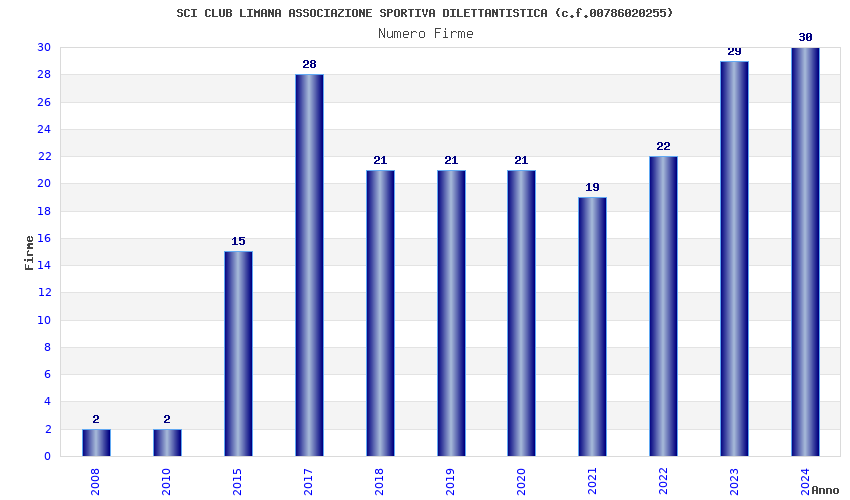 | Anno | Firme | Importi | Media | Naz. | Reg. | Prov. | Comu. |