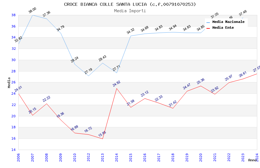 | Anno | Firme | Importi | Media | Naz. | Reg. | Prov. | Comu. |