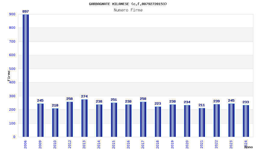 | Anno | Firme | Importi | Media | Naz. | Reg. | Prov. | Comu. |