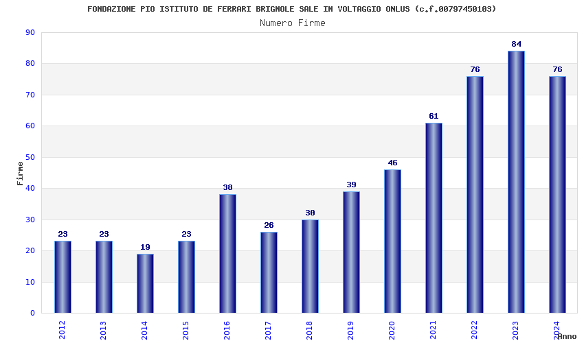 | Anno | Firme | Importi | Media | Naz. | Reg. | Prov. | Comu. |
