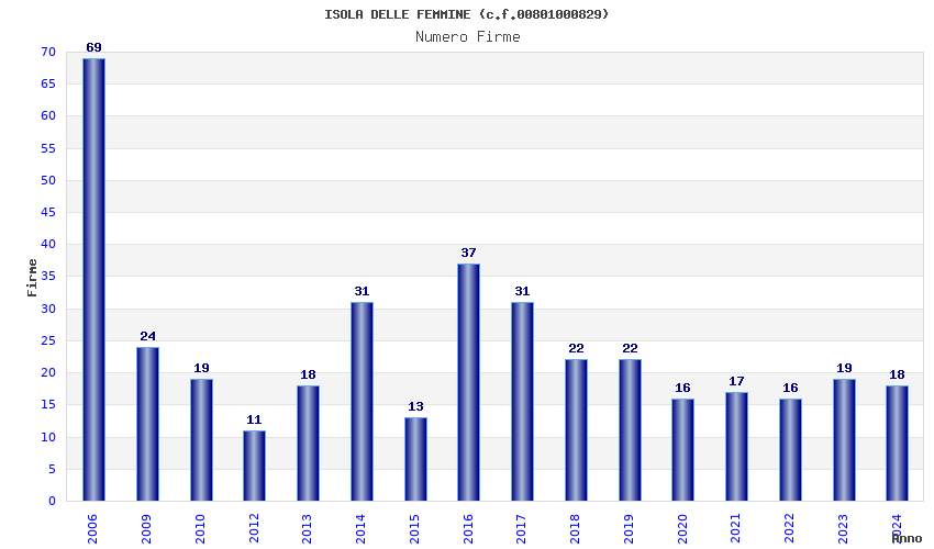 | Anno | Firme | Importi | Media | Naz. | Reg. | Prov. | Comu. |