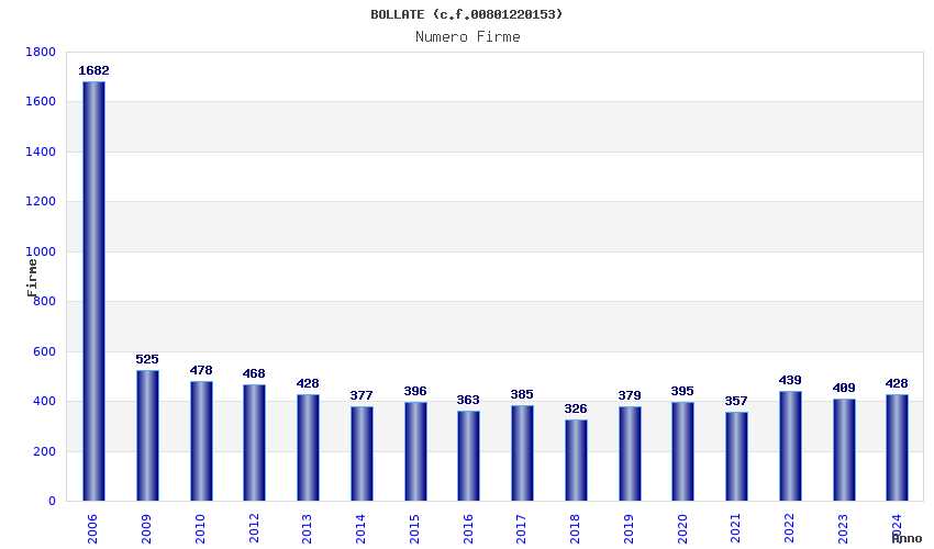 | Anno | Firme | Importi | Media | Naz. | Reg. | Prov. | Comu. |