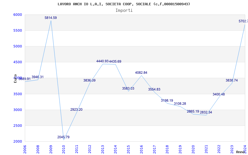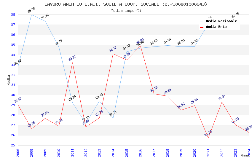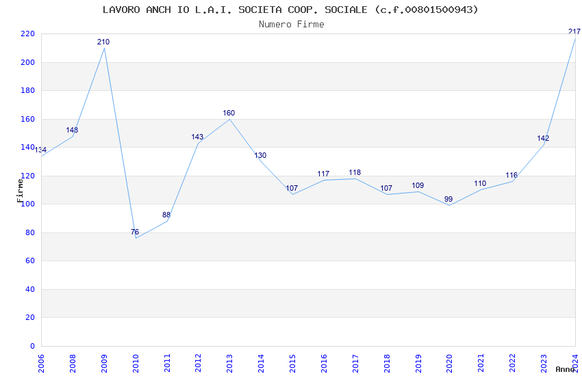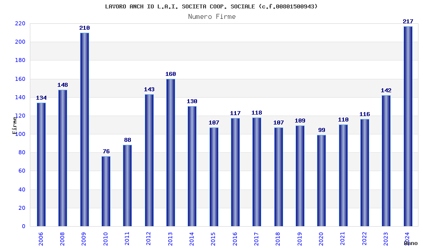| Anno | Firme | Importi | Media | Naz. | Reg. | Prov. | Comu. |