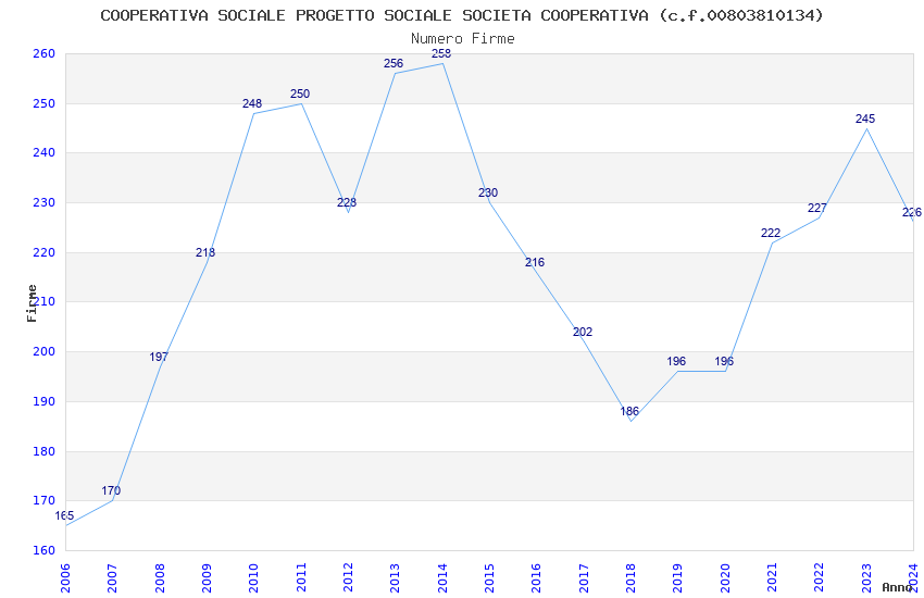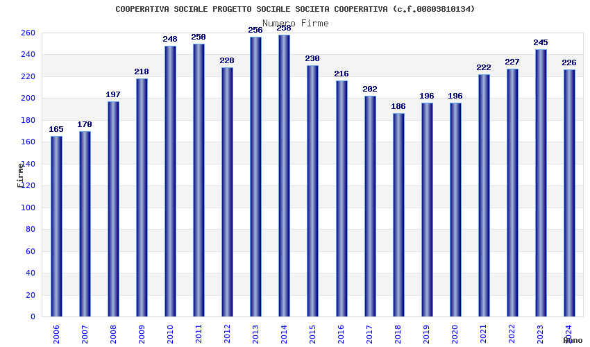 | Anno | Firme | Importi | Media | Naz. | Reg. | Prov. | Comu. |