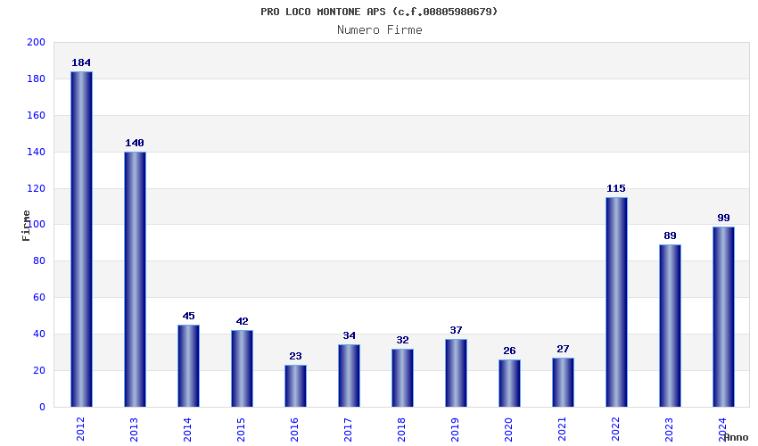| Anno | Firme | Importi | Media | Naz. | Reg. | Prov. | Comu. |