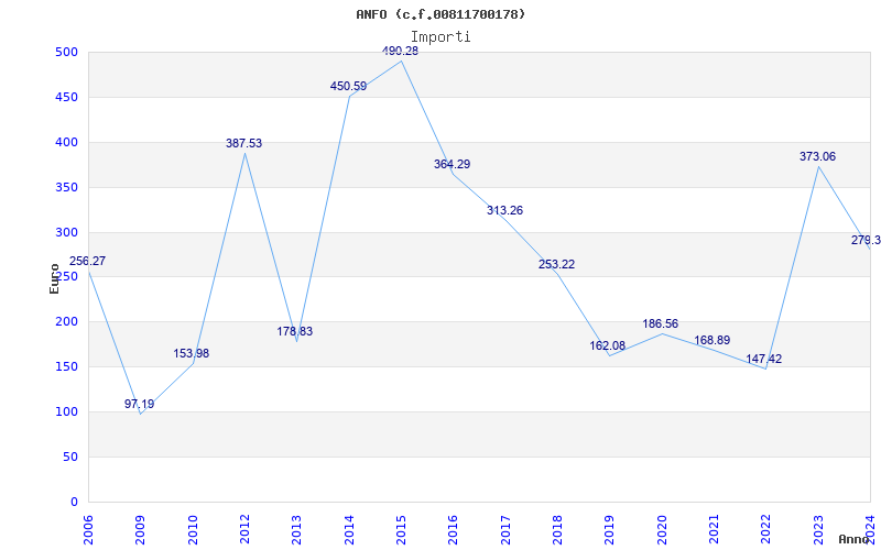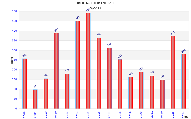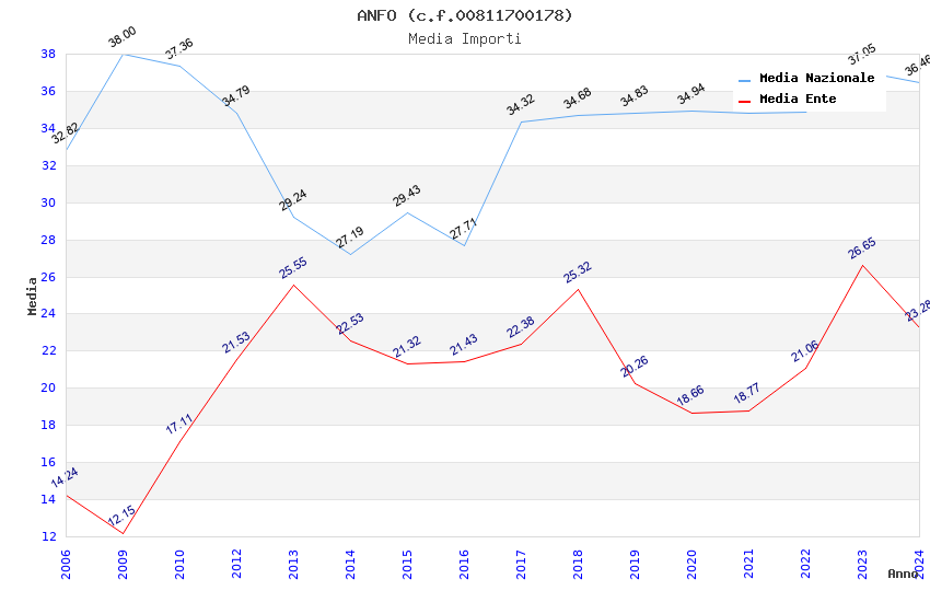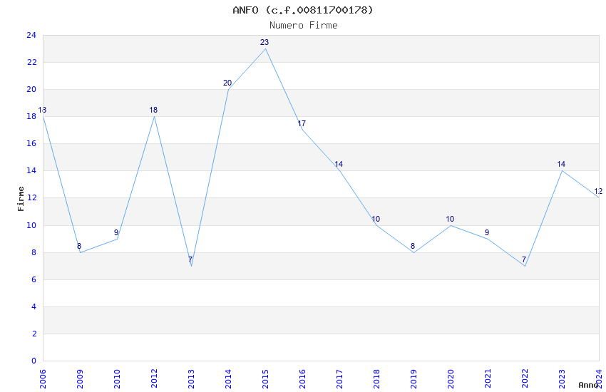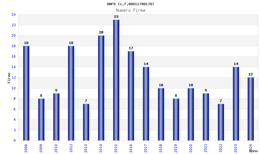 | Anno | Firme | Importi | Media | Naz. | Reg. | Prov. | Comu. |