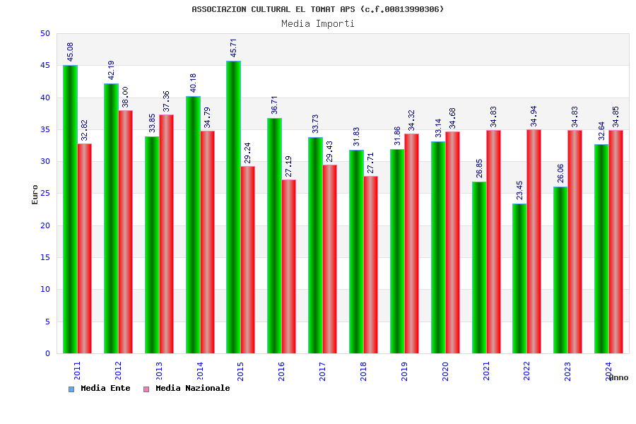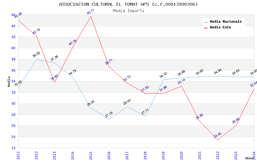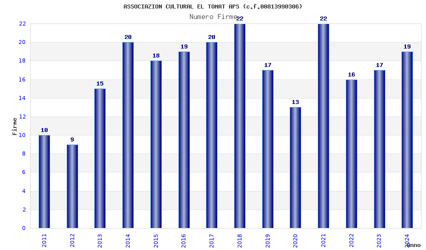 | Anno | Firme | Importi | Media | Naz. | Reg. | Prov. | Comu. |