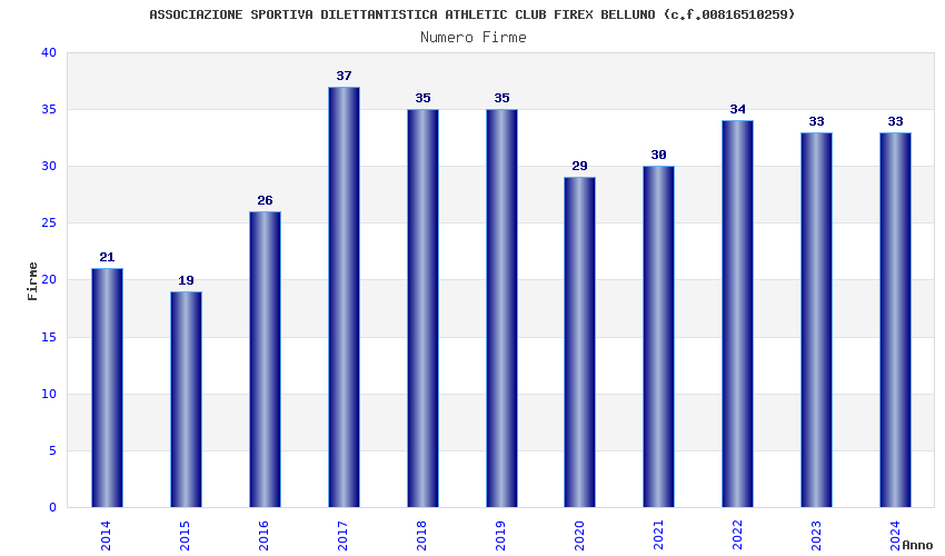 | Anno | Firme | Importi | Media | Naz. | Reg. | Prov. | Comu. |