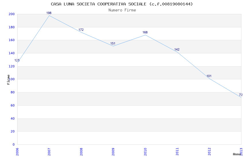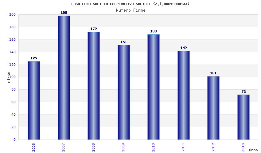 | Anno | Firme | Importi | Media | Naz. | Reg. | Prov. | Comu. |