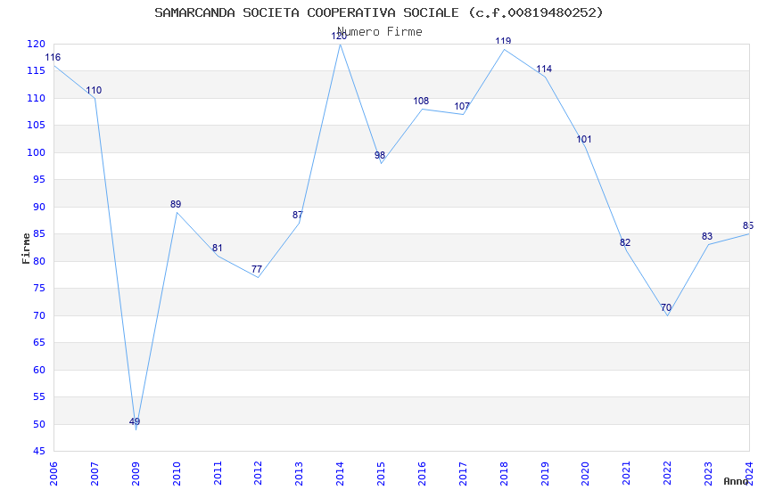 | 2023 | 83 | 3.468,21 | 41,79 | 15.338 | 1.414 | 69 | 21 |