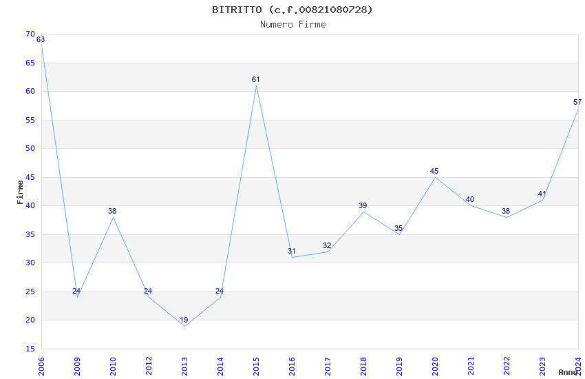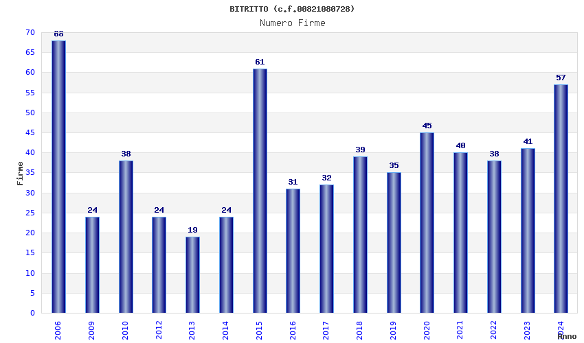 | Anno | Firme | Importi | Media | Naz. | Reg. | Prov. | Comu. |
