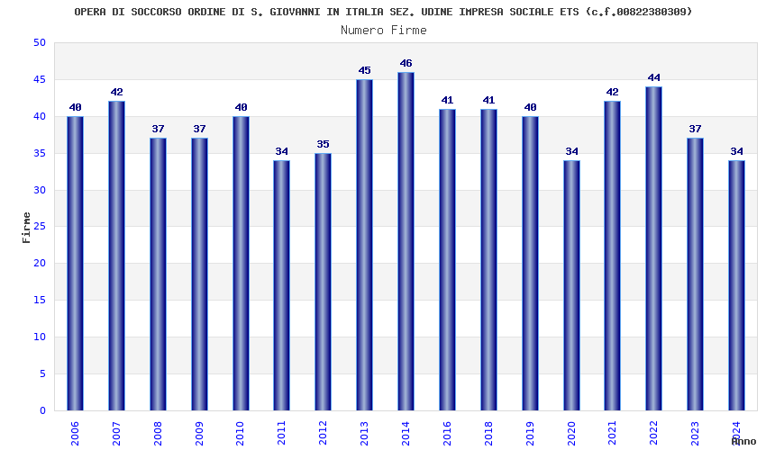 | Anno | Firme | Importi | Media | Naz. | Reg. | Prov. | Comu. |