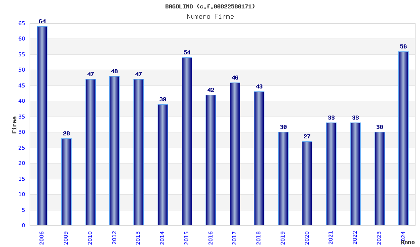 | Anno | Firme | Importi | Media | Naz. | Reg. | Prov. | Comu. |