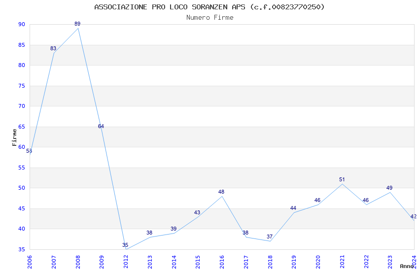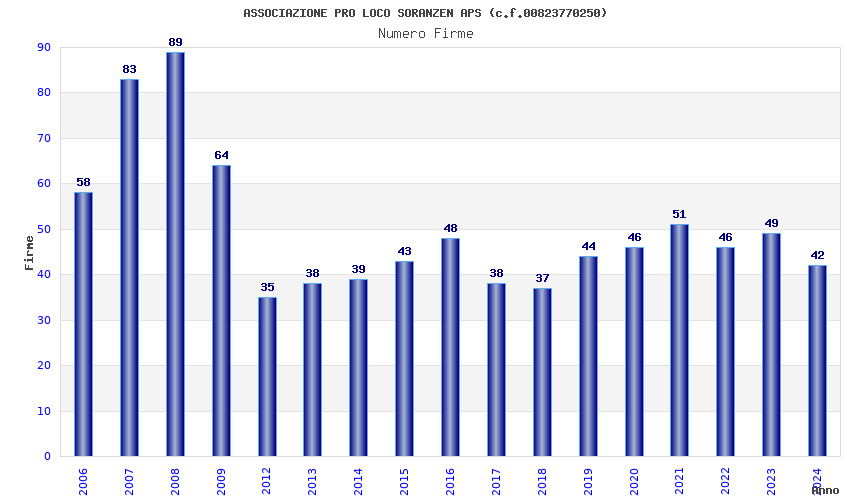 | Anno | Firme | Importi | Media | Naz. | Reg. | Prov. | Comu. |