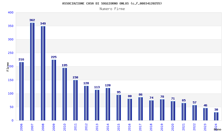 | Anno | Firme | Importi | Media | Naz. | Reg. | Prov. | Comu. |