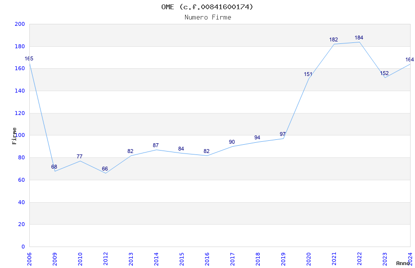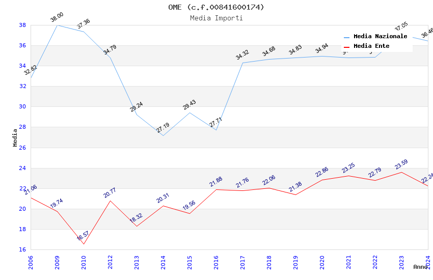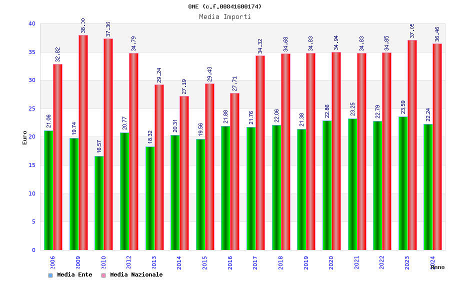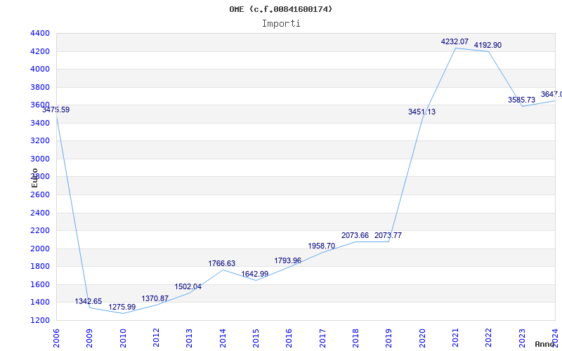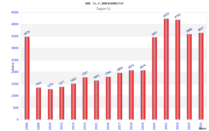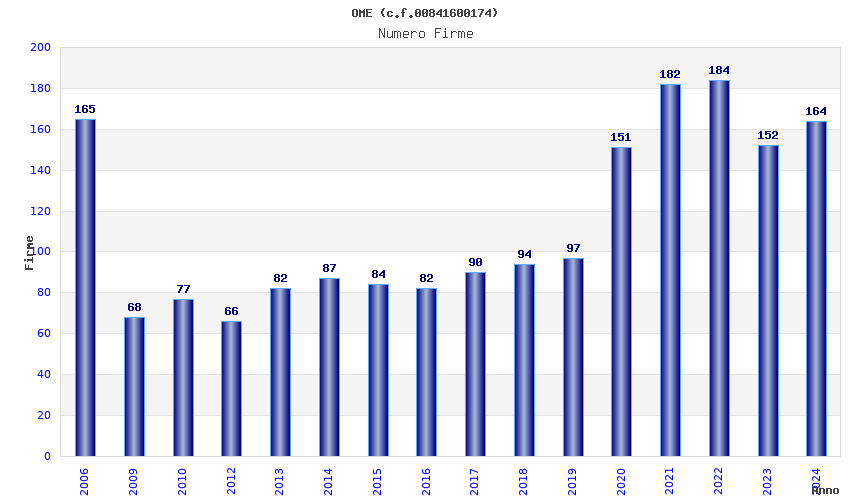 | Anno | Firme | Importi | Media | Naz. | Reg. | Prov. | Comu. |