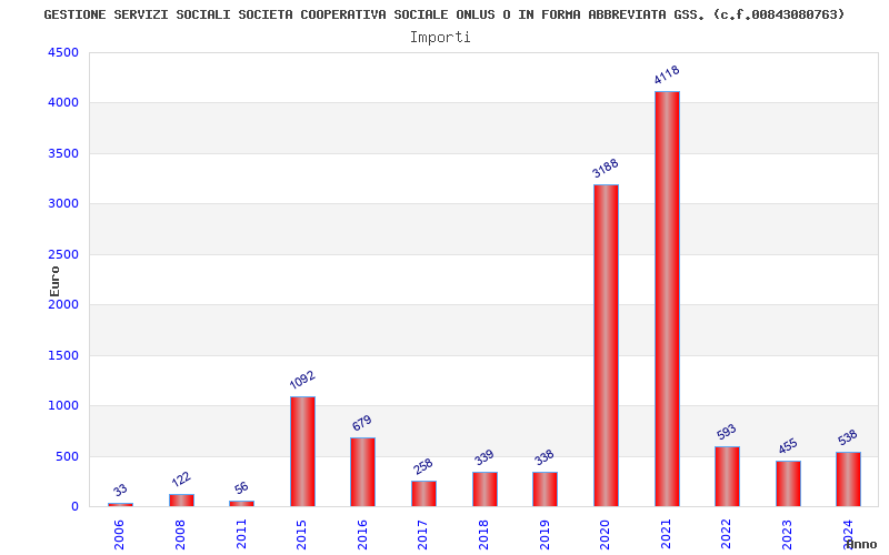 | Anno | Firme | Importi | Media | Naz. | Reg. | Prov. | Comu. |