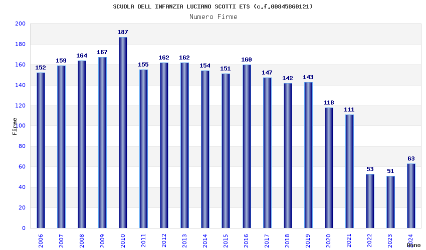 | Anno | Firme | Importi | Media | Naz. | Reg. | Prov. | Comu. |