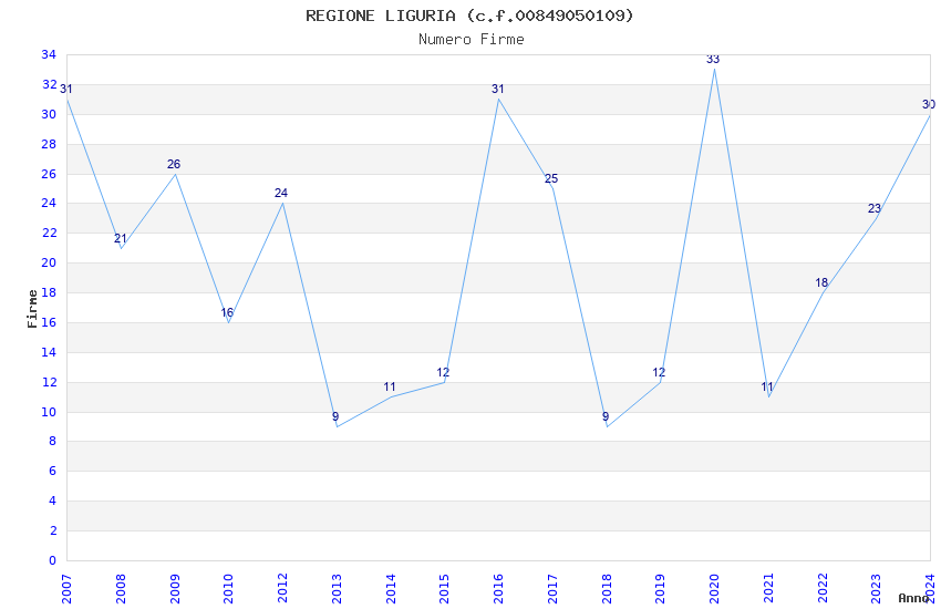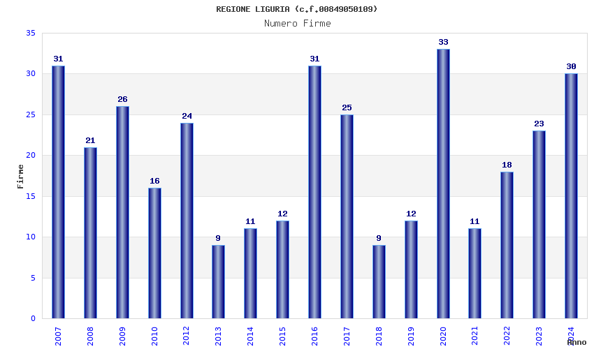 Anno Firme Importi Media Naz. Reg. Prov. Comu.