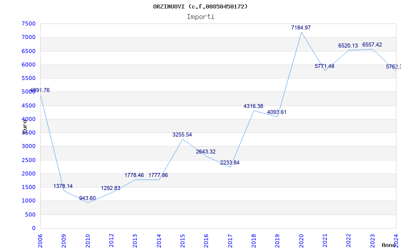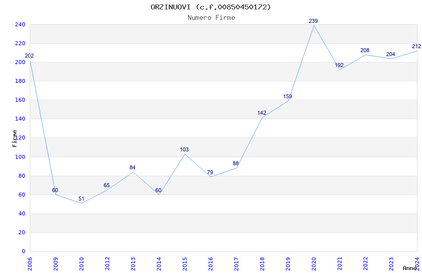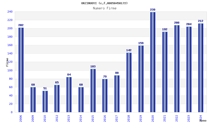 | Anno | Firme | Importi | Media | Naz. | Reg. | Prov. | Comu. |