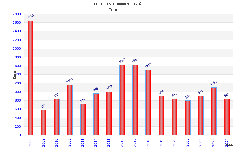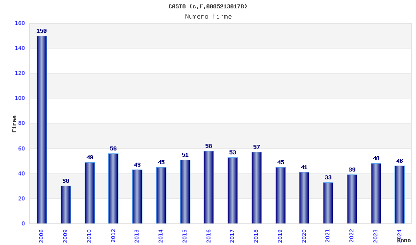 | Anno | Firme | Importi | Media | Naz. | Reg. | Prov. | Comu. |