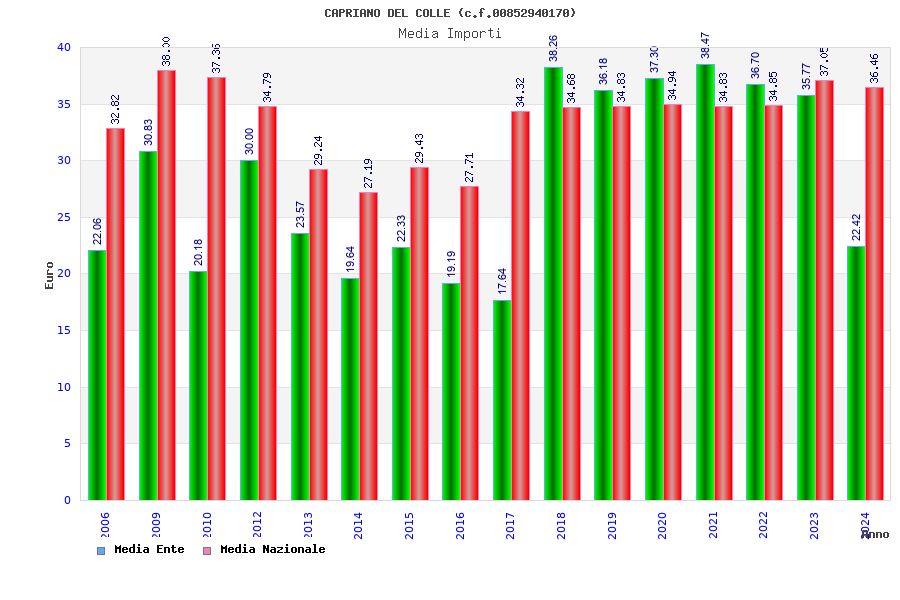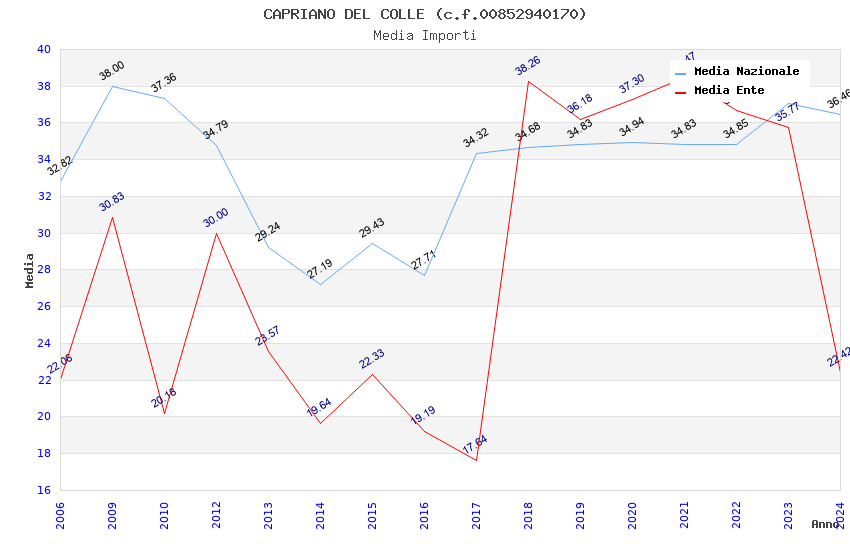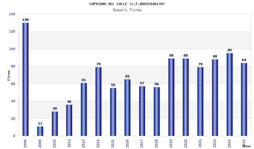 | Anno | Firme | Importi | Media | Naz. | Reg. | Prov. | Comu. |