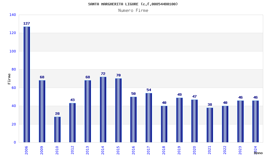| Anno | Firme | Importi | Media | Naz. | Reg. | Prov. | Comu. |