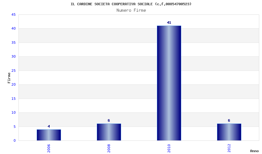 | Anno | Firme | Importi | Media | Naz. | Reg. | Prov. | Comu. |