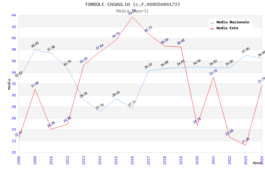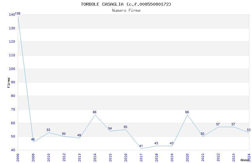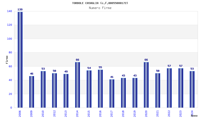 | Anno | Firme | Importi | Media | Naz. | Reg. | Prov. | Comu. |
