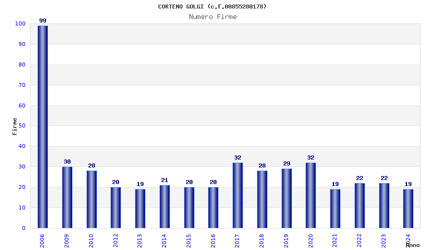 | Anno | Firme | Importi | Media | Naz. | Reg. | Prov. | Comu. |