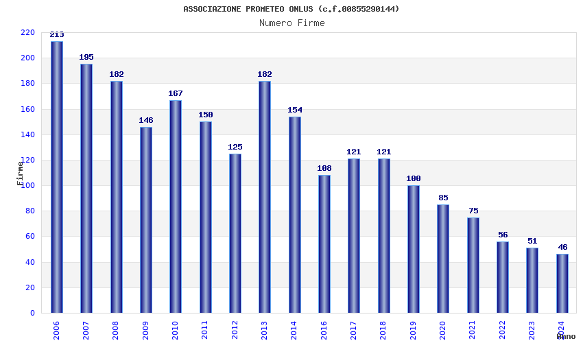 | Anno | Firme | Importi | Media | Naz. | Reg. | Prov. | Comu. |
