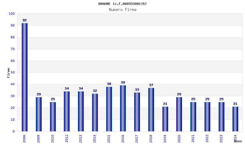 Anno Firme Importi Media Naz. Reg. Prov. Comu.