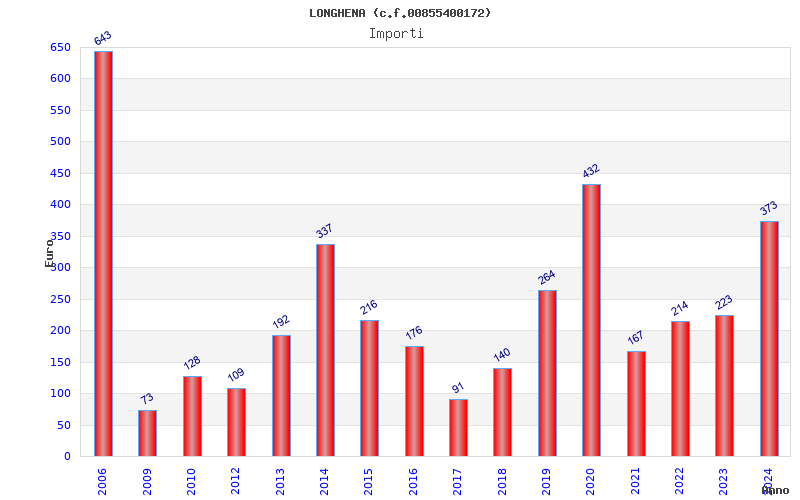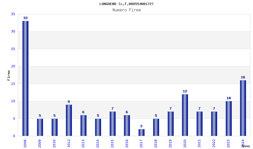 | Anno | Firme | Importi | Media | Naz. | Reg. | Prov. | Comu. |