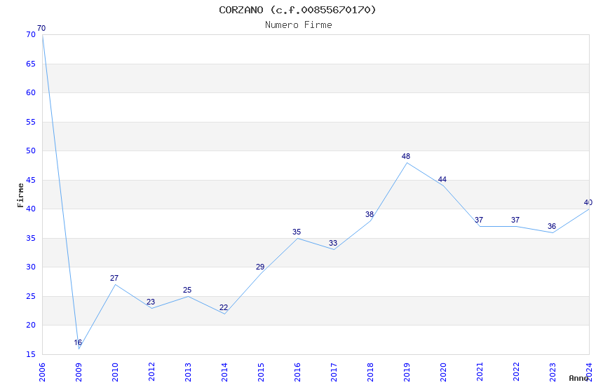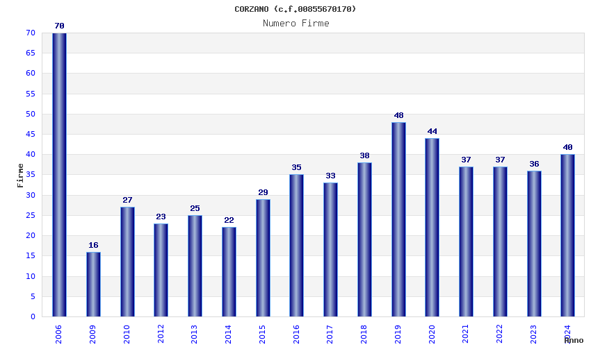 | Anno | Firme | Importi | Media | Naz. | Reg. | Prov. | Comu. |