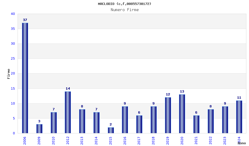 | Anno | Firme | Importi | Media | Naz. | Reg. | Prov. | Comu. |